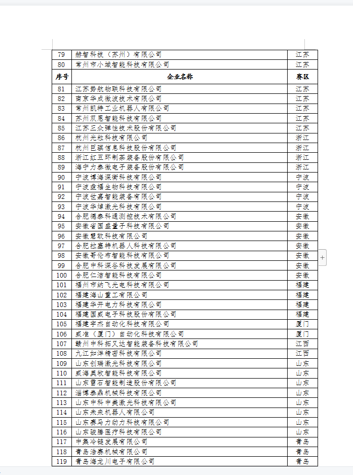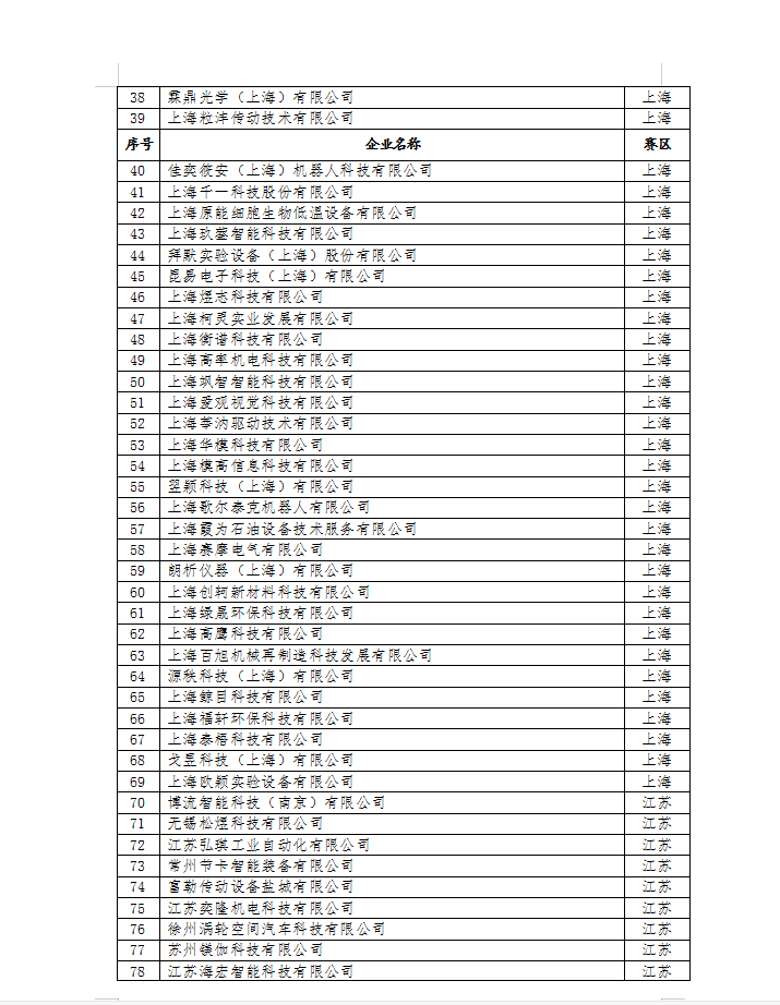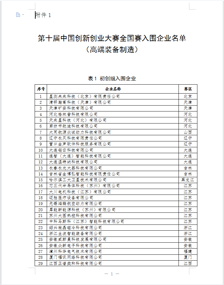 第十屆中國創新創業大賽全國賽入圍企業名單(高端裝備制造)