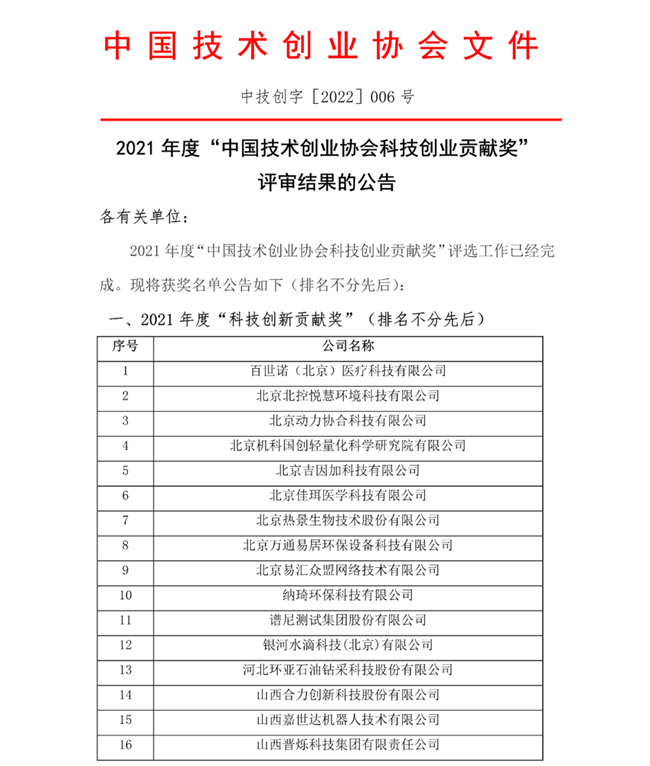 2021年度“中國技術創業協會科技創業貢獻獎”評審結果日前正式公布,甘肅八家企業單位分別榮獲2021年度“科技創業孵化貢獻獎”和2021年度“科學創新貢獻獎”。